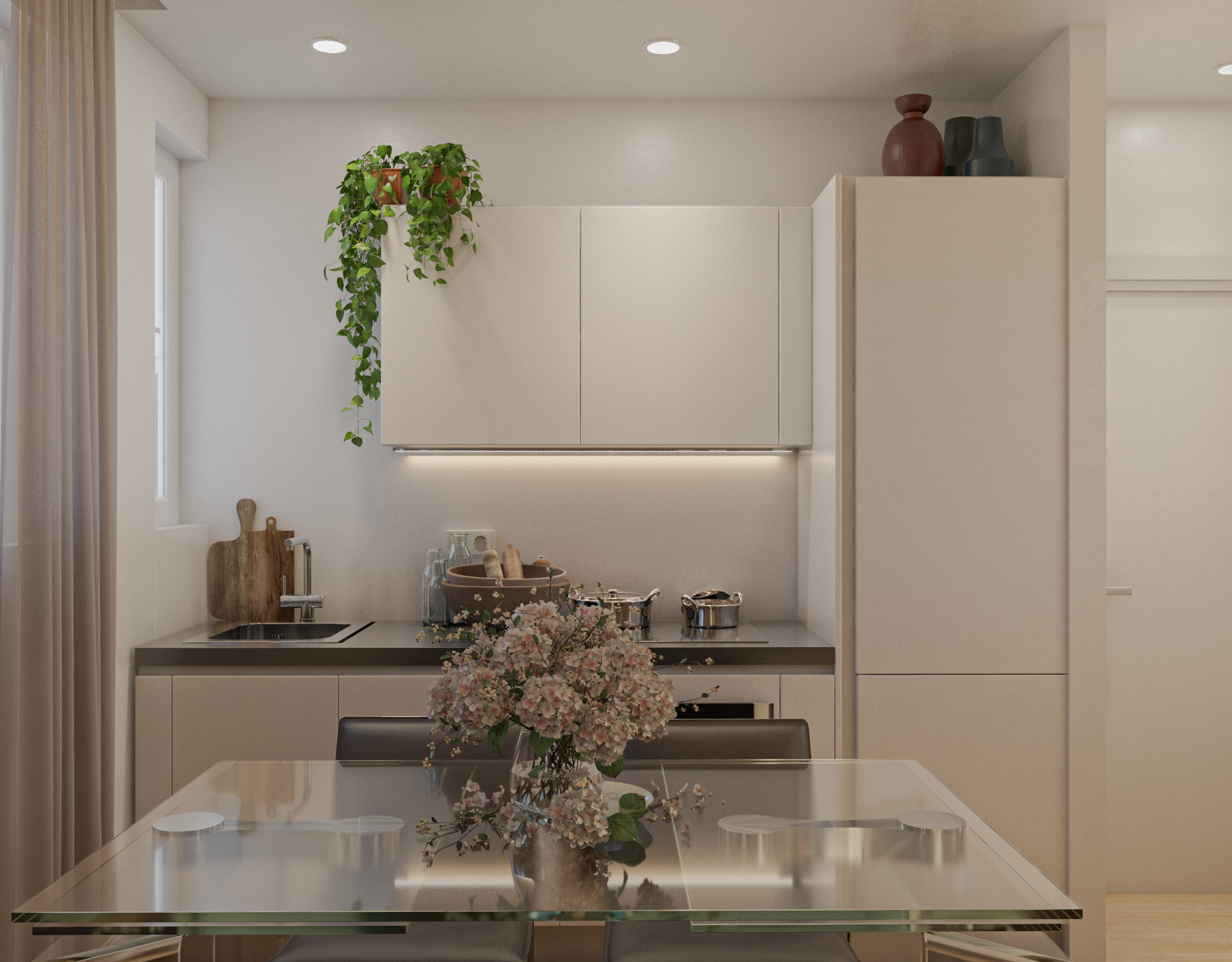 - Cucina completa di elettrodomestici: piano cottura ceramico, frigo con congelatore, lavapiatti e cappa aspirante;