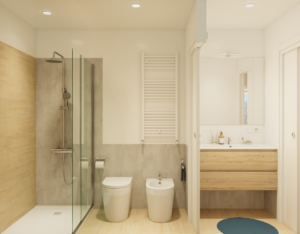 - Pavimento e rivestimento bagni in gres porcellanato in pasta con altissima resistenza all’usura;