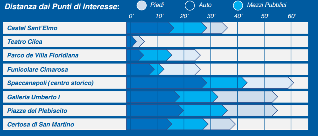 Il quartiere Vomero è situato su una collina che offre una vista panoramica mozzafiato sulla città di Napoli, sul golfo e sul Vesuvio. La sua posizione permette di essere ben collegati con il centro storico della città, pur godendo di una certa tranquillità lontano dal caos del traffico cittadino. È quindi un quartiere che offre il meglio di entrambi i mondi: