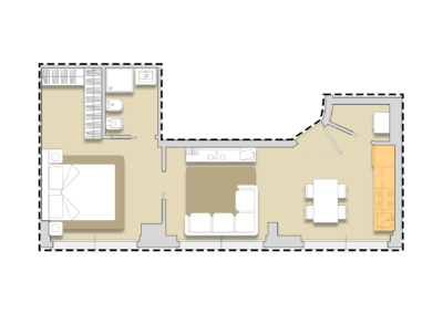 Operazione di valorizzazione e frazionamento dell’immobile posto al piano rialzato. L’intervento prevede la realizzazione di 4 appartamenti, con una superficie media di circa 45 mq, accompagnata da un significativo miglioramento delle prestazioni energetiche, con il raggiungimento della classe A1 / A2. Il cantiere risulta in fase di conclusione in questi giorni, con le lavorazioni delle ultime finiture ormai prossime al completamento.